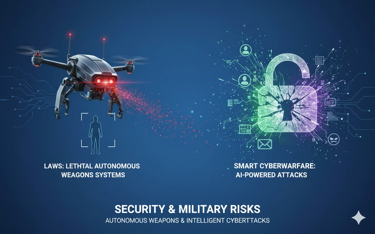 ۳. خطرات امنیتی و نظامی: سلاحهای خودمختار و جنگ سایبری هوشمند